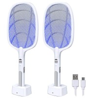 ELECTRIC TRAP LAMP: Simply place the mosquito racket on the base and activate it. Mosquitoes are immediately killed if they fly toward the purple light.
